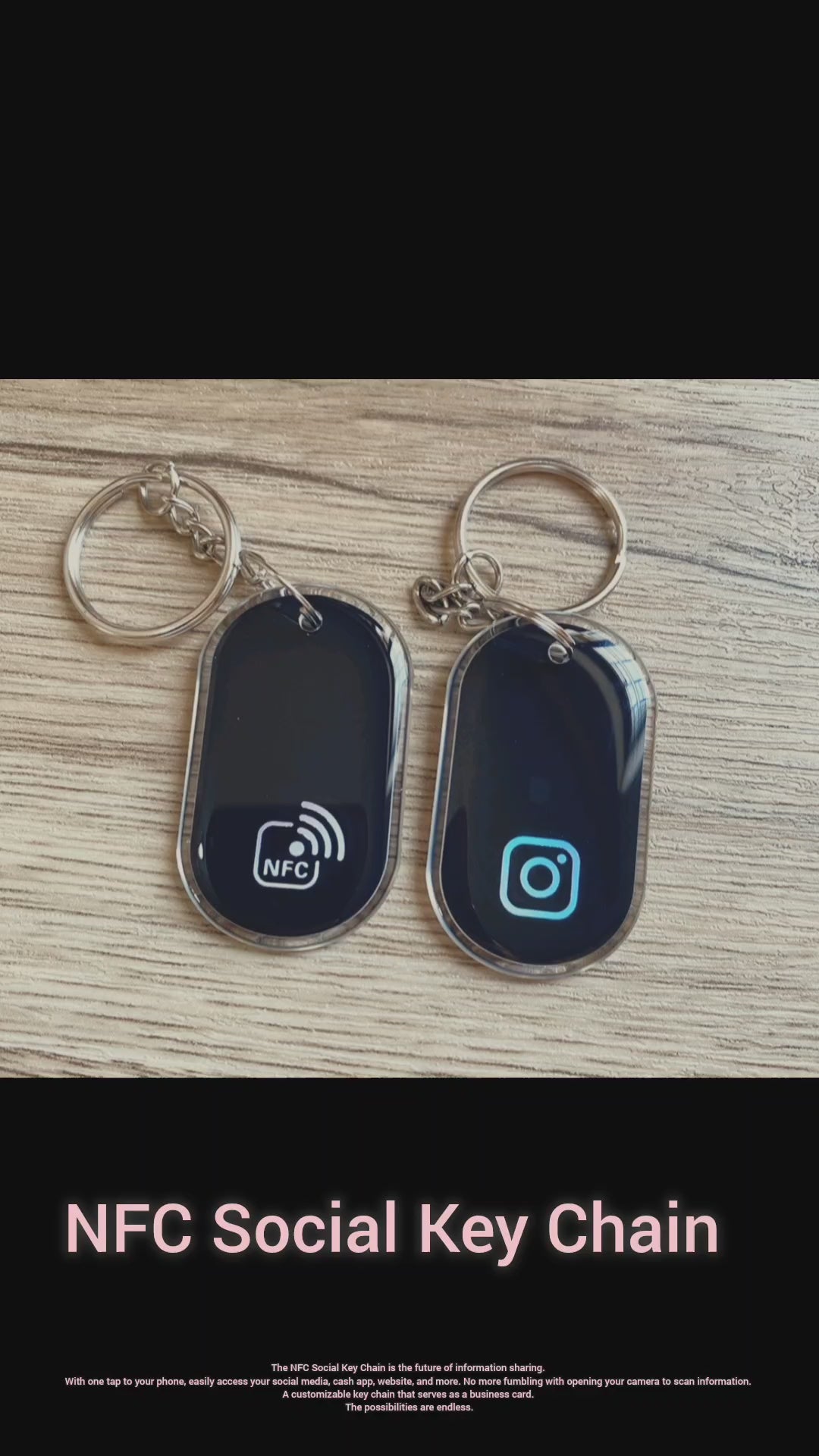 The NFC Social Key Chain is the future of information sharing. With one tap to your phone, easily access your social media, cash app, website, and more. No more fumbling with opening your camera to scan information. A customizable key chain that serves as a business card. The possibilities are endless.